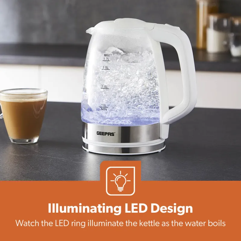 1.7L LED Rapid Boil White Glass Electric Kettle