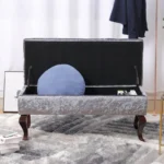100cm Wide Grey Velvet Upholstery Storage Bench Footstool