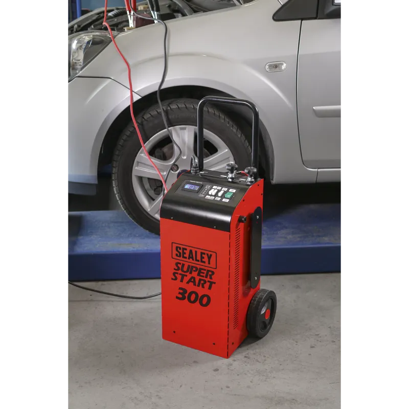 Professional starter/charger fitted with a heavy-duty transformer, flush mounted digital ammeter and variable charge rate controls. Suitable for EFB stop/start batteries.