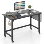 The spacious desktop offers convenient access to your essential work supplies, keeping your workspace organized and clutter-free. Additionally, this computer desk features a storage bag and 2 handy headphone hooks, allowing easy storage for your accessories while maintaining a clean desk surface. You can assemble the storage bag and hooks on either side or not based on your needs. Built on a heavy-duty metal frame, the rolling PC desk promises enhanced stability and long-lasting durability. Moreover, 2 lockable casters allow you to position it wherever needed. Overall, the computer desk on wheels provides practical solution for efficiency and comfort in your workspace. Large Work Space: This 120cm computer desk offers ample space for your monitor, books, and supplies, creating a comfortable and organized work environment. Plus, it offers enough working space for home office activities. Flexible Storage Solution: The thoughtful storage bag and 2 hanging hooks keep essential items within reach and maintain a clean work area. For added convenience, you can assemble them on either side or not based on your needs. Easy Movement and Lockable Design: 4 smooth rolling casters (2 with brakes) transform this laptop desk into a mobile computer workstation. Effortlessly move it from one room to another or lock it securely in place. Heavy-duty Metal Frame: Constructed with a heavy-duty metal frame, this rolling writing desk offers enhanced stability and durability. The stable triangular structure and crossbars make it a reliable addition to your room. Versatile Home Office Desk: From intense study sessions to daily tasks, this mobile computer desk will meet your needs. Besides, it can be used as a writing desk, study desk, laptop desk, gaming desk, or conference table.