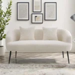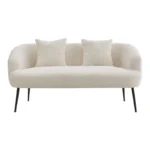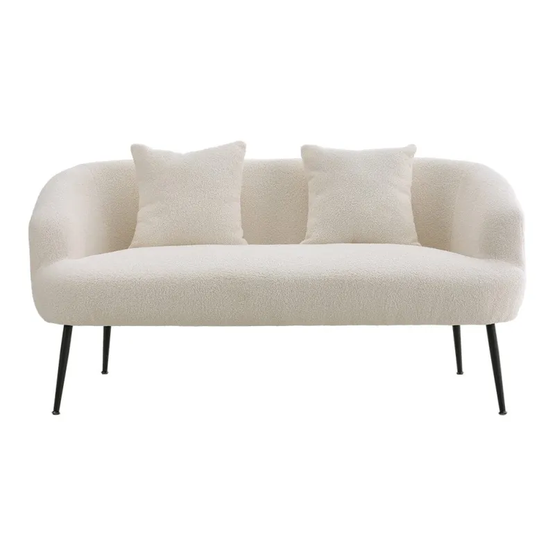 140cm White 2 Seater Sofa Teddy Fabric Loveseat with Metal Legs