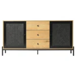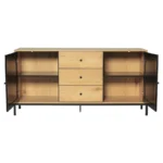 155CM Wide Rattan Wooden Storage Cabinet with 2 Cupboard Doors and 3 Drawers