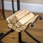 2-Tier Log Holder / Firewood Rack with Adjustable Shelf & 4 Tools, Hooks, Scrolls