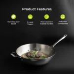 STAINLESS STEEL BODY WITH 3-LAYER INDUCTION BASE: The Royalford wok pan is made of stainless steel body and lid. It has an extra-thick 3-layer induction base. The aluminium middle layer ensures rapid and even heat distribution, allowing you to achieve perfect results every time you cook. Say goodbye to unevenly cooked meals and get the efficiency of cooking.