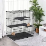 3 Level DIY Metal Pet Play Pen, 4 Doors, Black