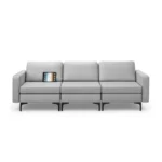 Want a large sectional sofa that combines comfort and aesthetics as one? If so, this 3-seat sofa couch is a perfect choice.In order to provide you with comfortable sitting experience, the sofa couch is ergonomically designed with human-oriented sloped backrest, soft back cushion and widened armrest. The high-density sponge and original distributed elastic system will not sink easily even after long-term usage. Thanks to the steel frame and sturdy metal legs, the modular sofa can easily withstand a 1980 lbs of load. Furthermore, the remote control caddy holder, power outlet and USB ports bring unparalleled convenience to your life. If you are looking for a 3-seat sofa couch like this, do not hesitate to place an order! Shipped in 3 Boxes: This 3-seat sofa couch comes with 3 boxes, so that you may not receive all the packages at the same time. The detailed instruction can guide you step by step through the installation. Overall dimension of the sofa: 240 x 160 x 82 cm (L x W x H); weight capacity of each seat: 300 kg. Excellent Sturdiness and Durability: Constructed from galvanized steel that is anti-rust and heavy-duty, the 3-seat sofa can accompany you for years to come. The metal legs are fitted with non-slip pads to prevent your floor from scratching. More importantly, the original distributed elastic system balances evenly the force for a longer service life. Thoughtful Design: The detachable armrest caddy holder allows for easy access to magazines, glasses and remote controls. The socket and USB ports keep your devices fully charged right at your side. You can conceal some items in the hidden storage box. What’s more, the seat and back cushion covers are removable and washable for great convenience. High-quality Materials for Comfort: The seat cushion is filled with high density sponge that brings comfy sitting experience. When you lean on the sofa, the soft back cushion wrapped in skin-friendly leatherier fabric will offer you consistent support and skin-friendly touch. Simple and Contemporary Appearance: The sleek lines and pure colour go well with any decorations and different furnishing styles, making the sectional sofa an aesthetic piece in your home. Of course, it’s also a great addition to the office, reception room, break room, etc. Please note that color difference may occur between different lights and monitors.