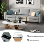 3-Seat Sofa with Magazine Caddy Holder, Socket and USB Charging Ports-Light Grey