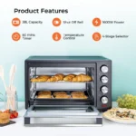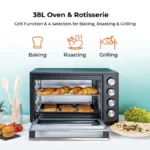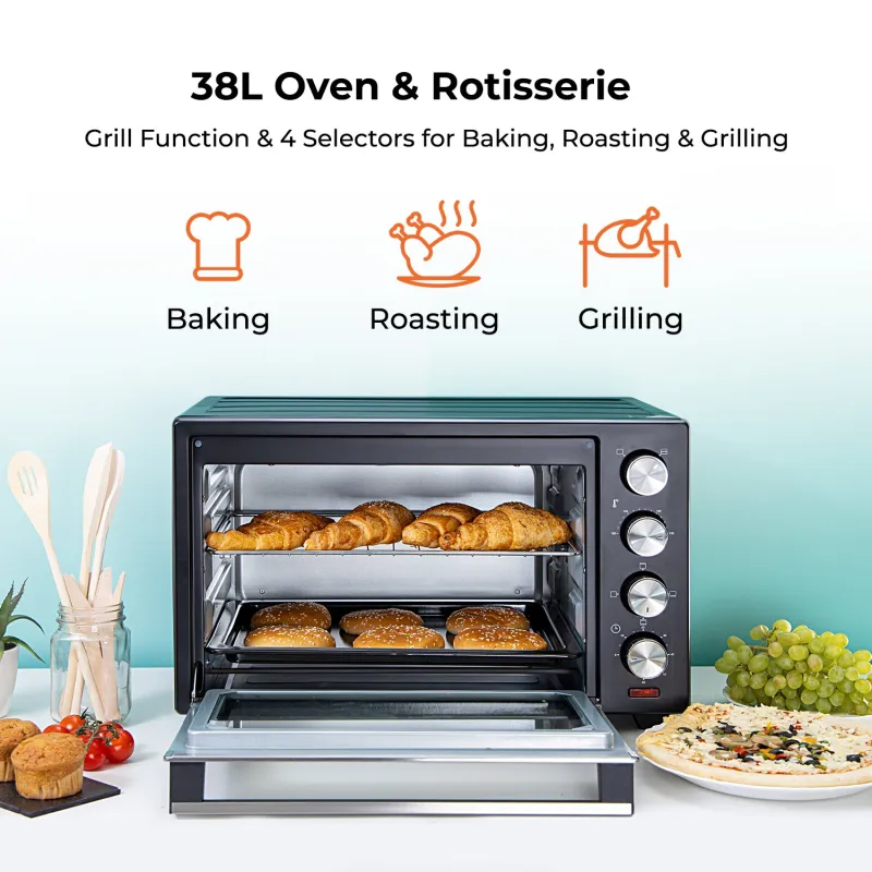 Generous 38L capacity: Don’t let its compact exterior fool you; this electric oven boasts an impressive 38L capacity, making it the perfect fit for a standard dinner plate and beyond. The spacious interior empowers you to create a diverse range of recipes and dishes, turning any meal into a delightful culinary adventure.