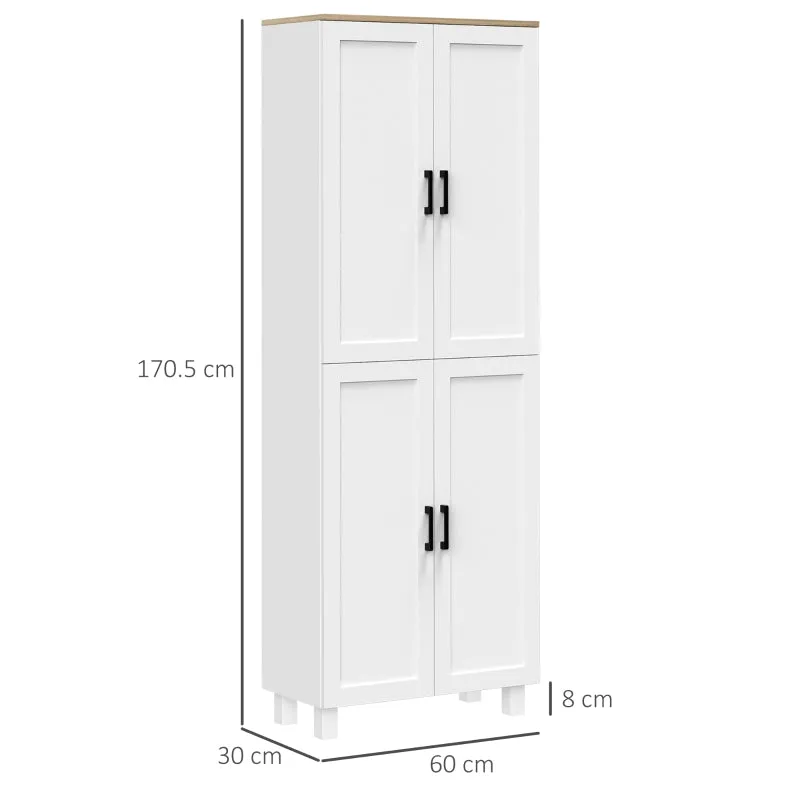 4-Door Kitchen Cupboard, Adjustable Shelves, White