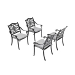 This chair set is perfect for hosting a family barbecue, enjoying a leisurely brunch, or simply relaxing in an outdoor shelter. Made with a traditional casting process, the chairs and backrests feature elegant patterns such as petals and rectangles, adding a touch of luxury to your patio. The antique design adds a sense of sophistication to your outdoor space, while the cast aluminum frame ensures durability. With 100% aluminum construction and a high-temperature-resistant polyester powder coating, this furniture set offers excellent weather, corrosion, and UV resistance. The comfortable seat and backrest, along with the ergonomic design, provide maximum comfort and support. You can enjoy moments in your outdoor area without worrying about upkeep. Perfect for garden get-togethers, this set allows you to create a stunning outdoor setting for spending time with loved ones.