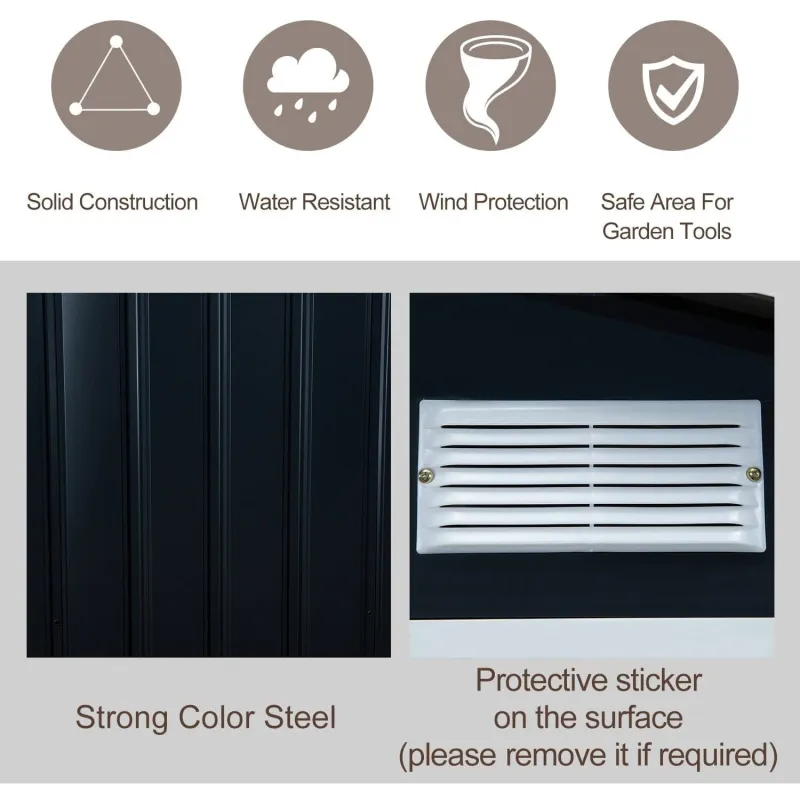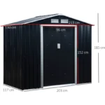 This Outsunny Lockable Metal Garden Shed 7x4ft is the ideal solution for safely storing garden equipment and other outdoor essentials. Constructed from sturdy galvanised steel with a lockable double sliding door and four vents for air circulation, it ensures reliable protection and a dryer interior. The included weather coating and floor foundation make it level and safe while its sloped roof prevents water from building up and stagnating. Look no further for a secure home for all your outdoor tools and gear.