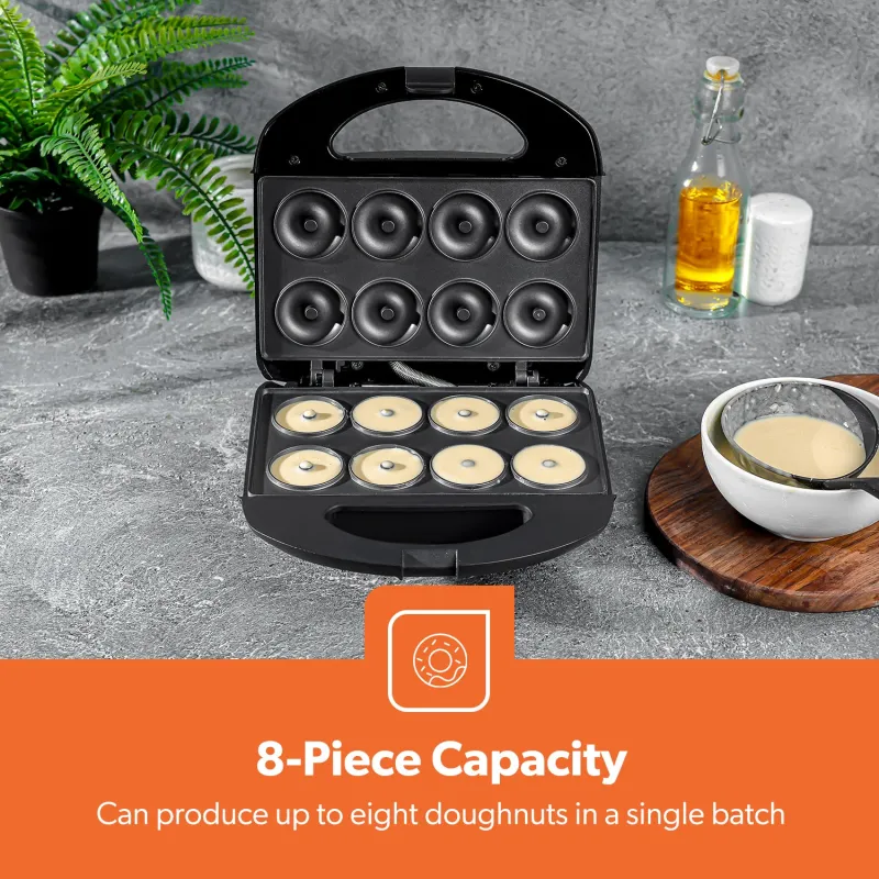 - MAKES 8 DELICIOUS DOUGHNUTS AT ONCE – Make 8 mini doughnuts at a time with this amazing doughnut maker and create the tastiest treats in a matter of minutes! Creates healthier doughnuts than usual due to baking them and not frying them!