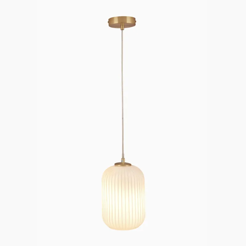 Pacific Lifestyle – Alessia White Glass and Gold Metal Ribbed Glass Pendant