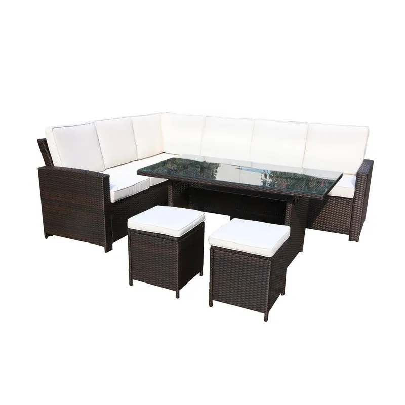 Marseille Rattan Garden Corner Sofa by Royalcraft – 8 Seats Ivory Cushions
