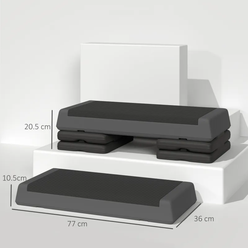 SPORTNOW Fitness Stepper, 3-Height Adjustable Aerobic Step, Non-Slip Exercise Step Board for Home Gym Office Workout, 10.5cm, 15.5cm, 20.5cm, Grey