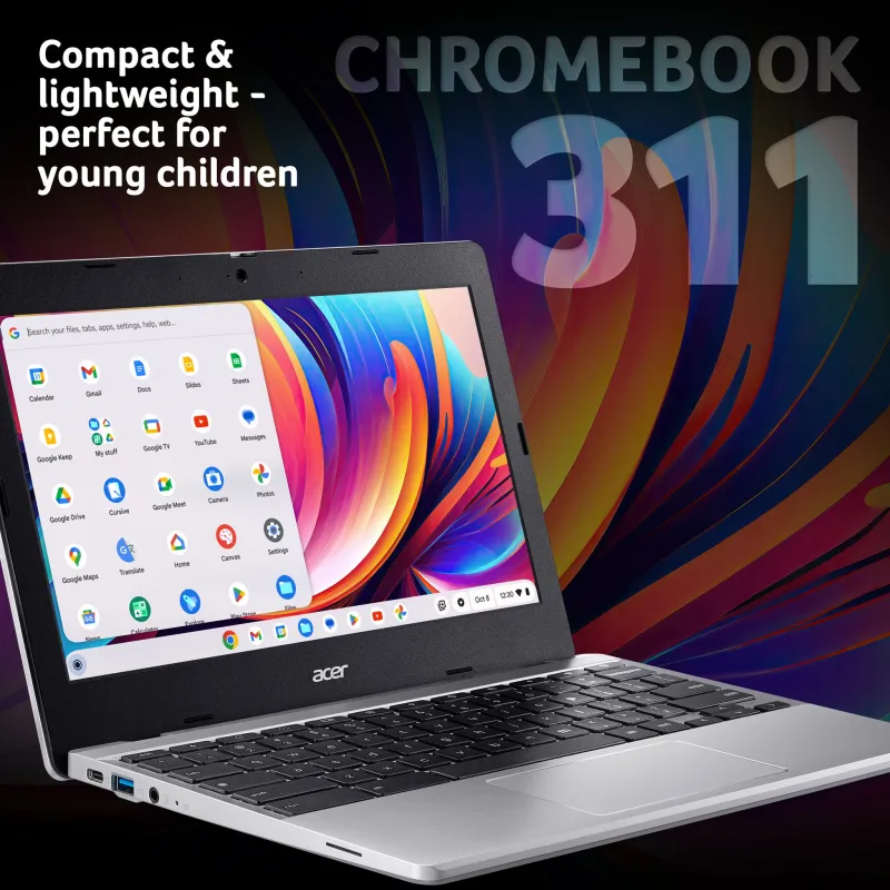 Acer Chromebook 311 CB311-12H Laptop – Intel N100, 4GB, 64GB eMMC , Integrated Graphics, 11.6″ HD, Google Chrome OS, Silver