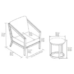 Side Table: H 53.3 x W 50.3 x D 50.3 cm, 8kg