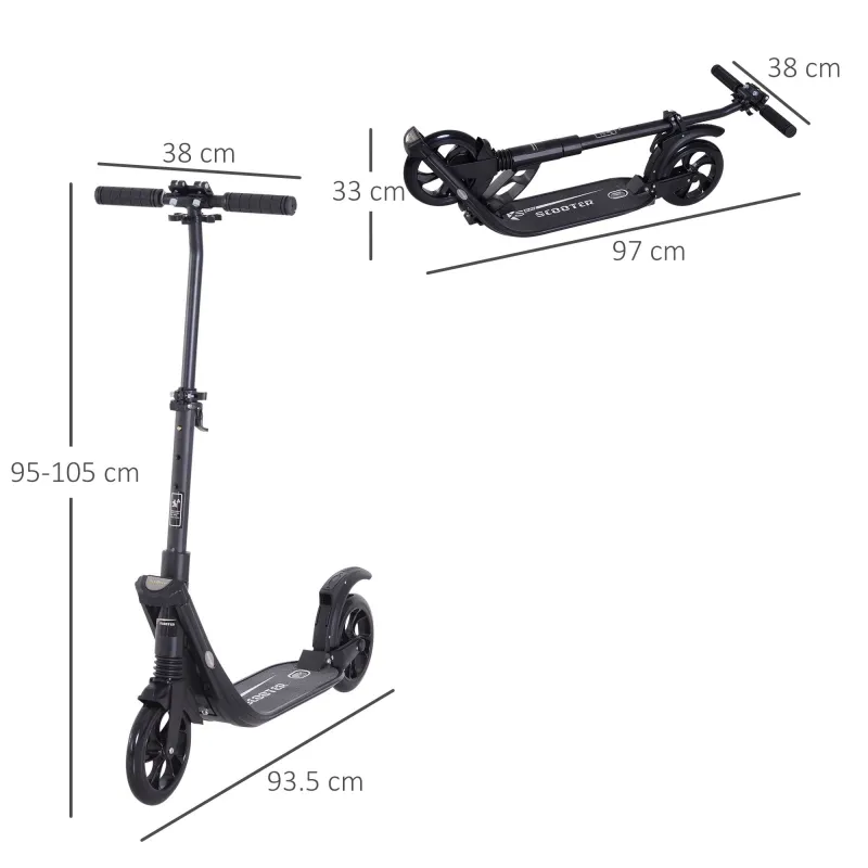 ALPINE SPIRIT Foldable Kick Scooter, Adjustable Height, 93.5L x 38W x 95-105Hcm-Black