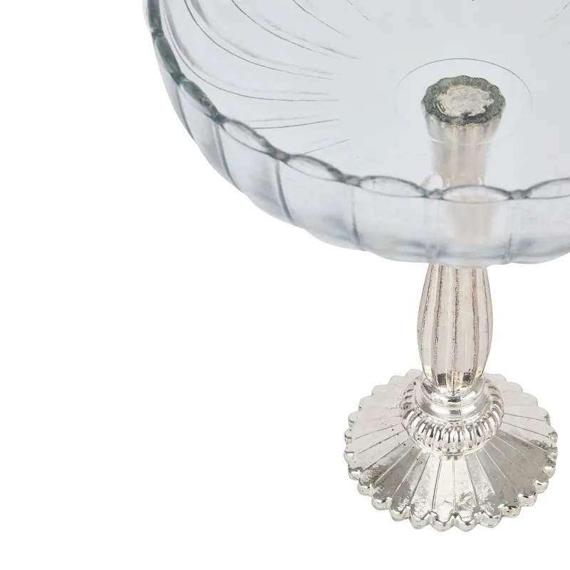 Antique Silver Fluted Glass Pedestal Bowl 30x28cm – Display Bowl for Home Decor & Entertaining