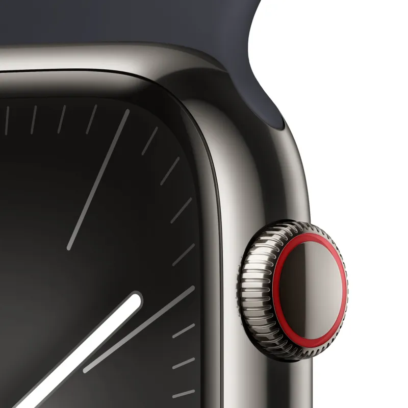 Apple Watch Series 9 GPS + Cellular 45mm Graphite Stainless Steel Case w/ Midnight Sport Band – S/M