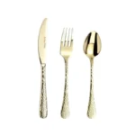 Arthur Price presents the Avalon Childrens Cutlery Set in Champagne, beautifully crafted from the finest 18/10 Sovereign Stainless Steel using the very best chromium and nickel. This exquisite set showcases a captivating titanium hammered finish with a gold finish adding a touch of elegance to any occasion. It’s a perfect choice for a thoughtful gift or a delightful surprise for your little ones that compliments the adult Avalon cutlery range.