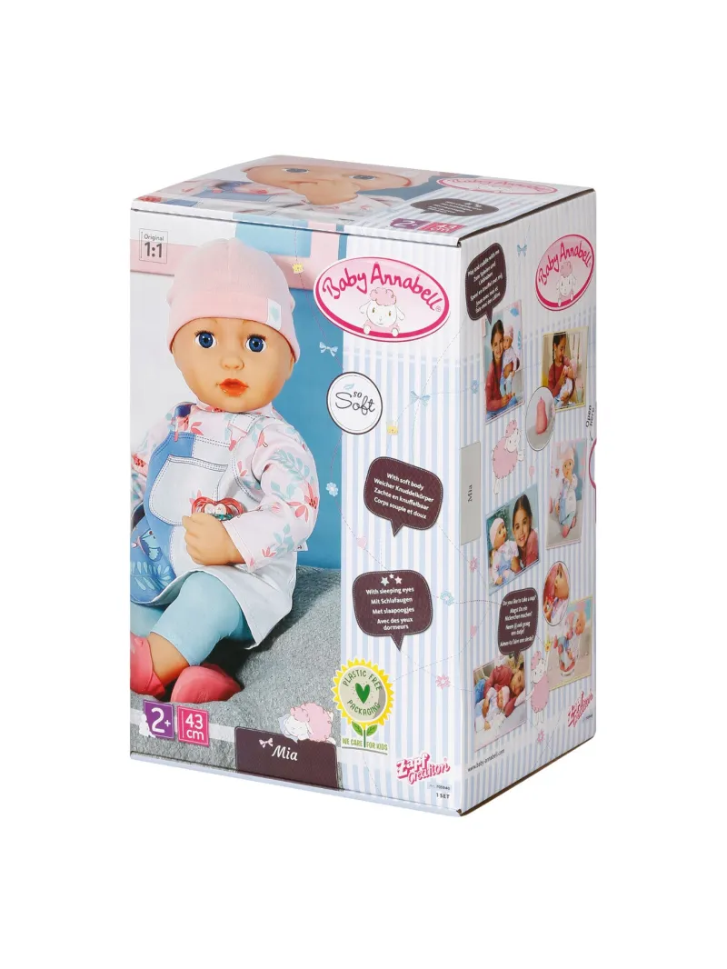 Baby Annabell Mia is just great to cuddle thanks to her fabric body. If you lay her on her back, she closes her eyes.