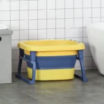 Children’s bath time is simpler with this HOMCOM baby bathtub. It’s two-in-one – use as a bucket, which is suitable for newborn babies up to six months, then use as a tub until they reach six years old – a solid investment that can be used for years. Made from smooth plastic with no sharp edges, it has a curved design for comfortable sitting, whilst the non-slip footpads keep the bathtub steady – there’s also a stool to sit on. Compact and foldable, perfect for saving space when not in use.