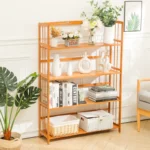 Bamboo Bookshelf Book Rack Organizer Free Standing for Living Room Study Room Office