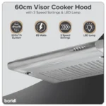 Home Extractor Hoods Baridi 60cm Visor Cooker Hood Extractor Fan for Undercabinets, Stainless Steel – DH108