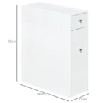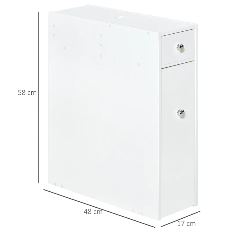 Maximise space and minimise clutter with this bathroom cabinet from HOMCOM. Made into a slimline design that measures just 17cm in width, it will fit into a wealth of spaces, making it great for even the smallest of bathrooms. Crafted from MDF with a fresh white paint finish, this unit is built to be a mainstay in your home furniture for years to come, with it featuring a large slide out bottom draw, a top draw and a top compartment, allowing you to store all your toiletries, towels, make-up and more with ease. Beautifully simple, it will blend into all style decors seamlessly.