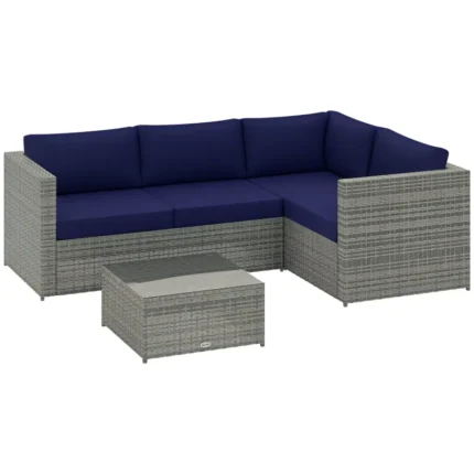Outsunny 3Pcs Rattan Corner Sofa Set with Coffee Table, Cushion, Blue £233.99 Original price was: £233.99.£77.70Current price is: £77.70.