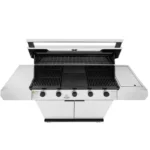 It’s a striking outdoor grill with a number of outstanding features, including strong cast iron rail burners and a black enamel roasting hood with a temperature indicator & viewing window. Grease leaks on your patio are also avoided thanks to the completely sealed and seam welded burner box, which offers uninterrupted chamber performance even in difficult windy conditions.