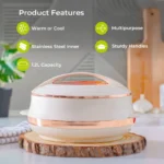 - HASSLE FREE & HYGIENIC – With this hot pot you can serve both warm and cool meals in style while also keeping them at the right temperature. Made from food grade safe thermal plastic and stainless-steel inner creating a robust casserole. Ideal for holiday, parties, dinner, pot-lucks, picnics will maintain your crunchy salads, fresh fruit salads, onion soup, pasta or any menu to that perfect temperature for your guests, friends or family.