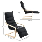 Black Curved Wooden Framed Accent Chair with Adjustable Footrest by HOMCOM