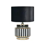 This drum lampshade is made from black velvet, adding a touch of luxury and a high-quality look and feel (yes, you absolutely will stroke it). The thickness of the velvet keeps the colour of the shade deep and rich even when the lamp is on, and the bronze-coloured liner enhances the light’s warmth. This combination gently diffuses light from the top and bottom of the shade, creating a cosy, ambient glow that’s perfect for providing subtle lighting without glare. Its clean, simple cylindrical design pairs well with both bold, statement lamp bases and more understated, minimalist styles.