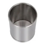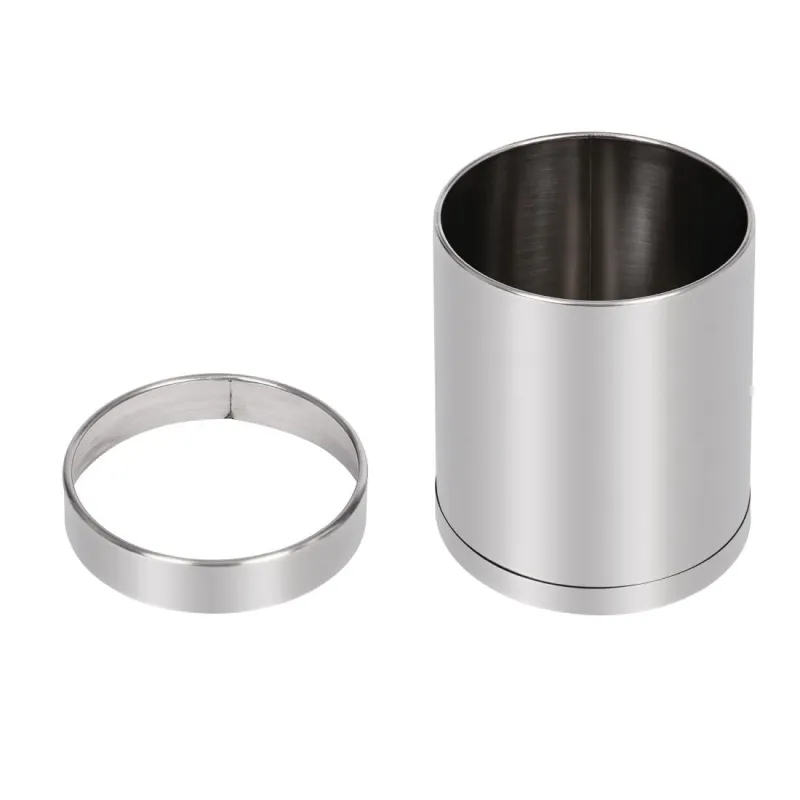 Attractive brushed stainless steel waste paper bin with removable rim to hide binliner.