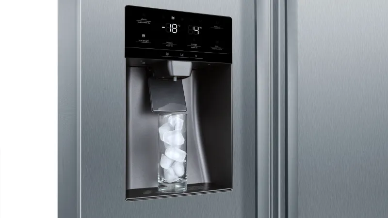 The NoFrost side-by-side fridge-freezer with indoor electronics is the perfect addition to any modern kitchen. With a sleek and stylish brushed steel finish, this fridge-freezer will be the focal point of your kitchen. The modern door display adds a touch of sophistication, while the ice dispenser ensures a constant supply of ice cubes with its mains water connection.