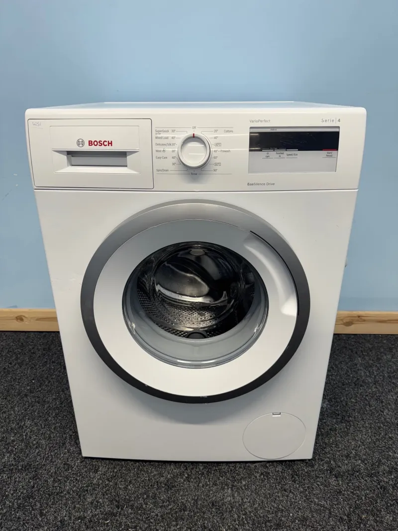 The Bosch WAN28080GB is a reliable 7kg washing machine built with German engineering and designed to deliver quiet, efficient laundry care. Its sleek white exterior and compact footprint make it a great fit for modern homes. With a 1400rpm spin speed, it ensures clothes dry faster after every wash.