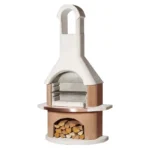 Exuding a distinct Mediterranean charm, the Buschbeck Toscana Masonry barbecue fireplace blends high-quality white quartz with striking terracotta elements in its firebox and fuel storage area. Elevating its visual appeal is a genuine copper insert embedded in the mantelpiece and a functional fuel storage space ingeniously integrated into the barbecue’s base.