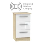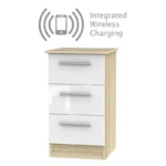 Buxton Wireless Charger Slim Bedside Table Natural & White 3 Drawers
