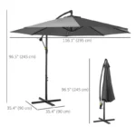 - CANTILEVER PARASOL DIMENSION: Φ295 x 245H cm. ASSEMBLY REQUIRED Note: Cross base included, weights are required