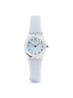 CASUAL BLUE (LK396) keeps it classy with a majestic Swatch Solar Spectrum glass that plays with the cool blue color of the transparent strap.