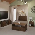 Catania Side Table Dark Brown 3 Shelves 3 Drawers 3 Doors