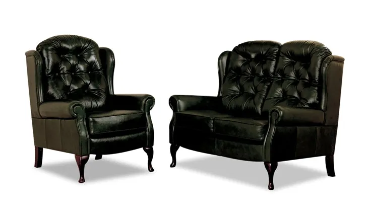 The Woburn legged model features a deep buttoned back, elegant wings and supportive scroll arms and for the more traditional fireside look the Queen Anne style wooden scroll legs in a choice of natural, teak or mahogany colour. Chairs are available in Standard or Petite.
