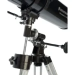 Discover our Solar System with the Celestron Powerseeker 114EQ. You’ll be ready to observe in minutes thanks to the quick and easy no-tool setup. The 114EQ provides bright, clear images of the moon, planets, star clusters and more for great night time viewing. The Powerseeker mount comes with two slow motion control knobs that allow you to make fine pointing adjustments to the telescope in both Right Ascension and Declination axes, also referred to as RA and DEC.