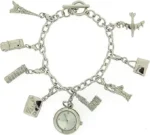 Charmed Ladies Analogue T-Bar Bracelet Charm Watch & 8 Hanging Charms Gift Set WA086983