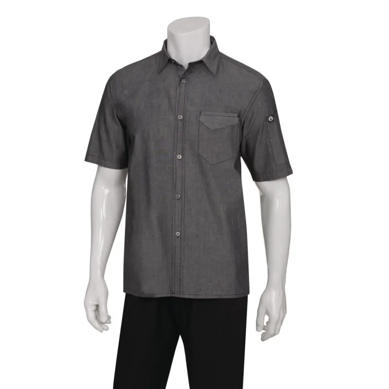 Chef Works Unisex Detroit Denim Short Sleeve Shirt Black M