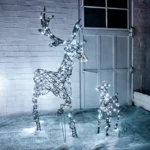 Pre-Lit Christmas Reindeer – 1M White Wire Light Up Mother & Baby with 250 White LEDs
