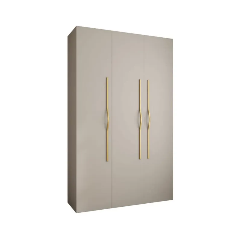 Offering a practical storage solution for smaller bedrooms, the Como II Hinged Door Wardrobe 150cm combines a compact design with ample storage. It includes three hinged doors, eleven shelves, and two hanging rails. Made from 16mm high-quality laminated board, it boasts a refined look and durability, with PVC finished edges for enhanced longevity and a touch of elegance from the gold metal handles.