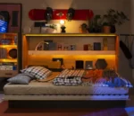 This bed provides a sleeping area without taking up valuable living space. You can simply fold up the bed when not in use to reclaim the free space. Add some personal touch and put some picture frames or decorations on the shelves so that the bed can still look interesting even when folded down!